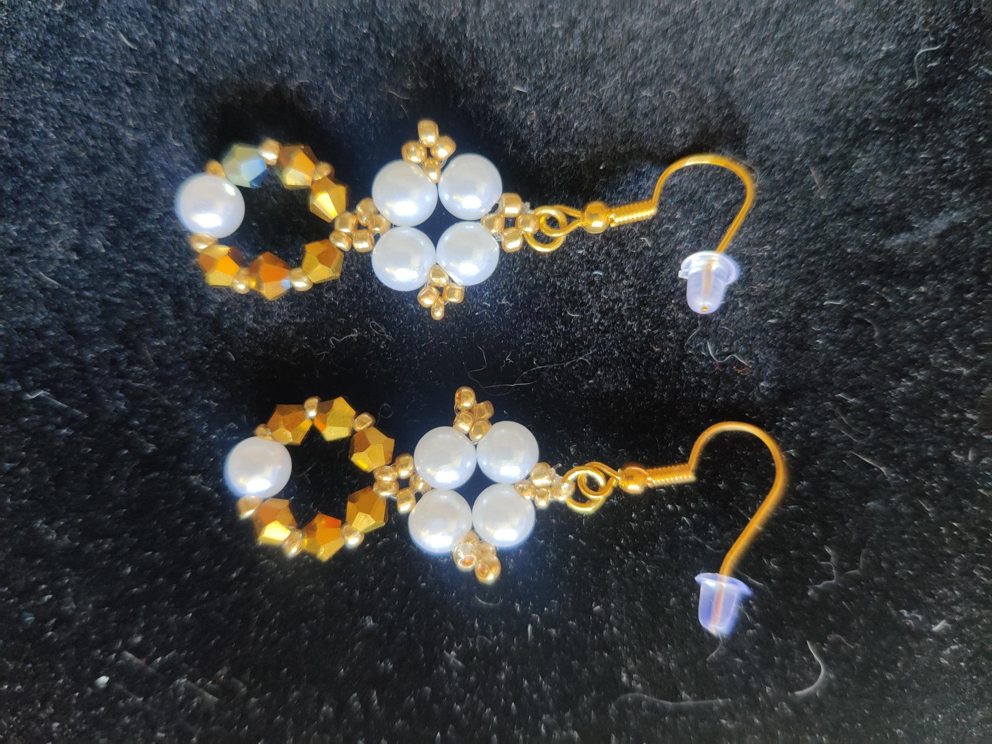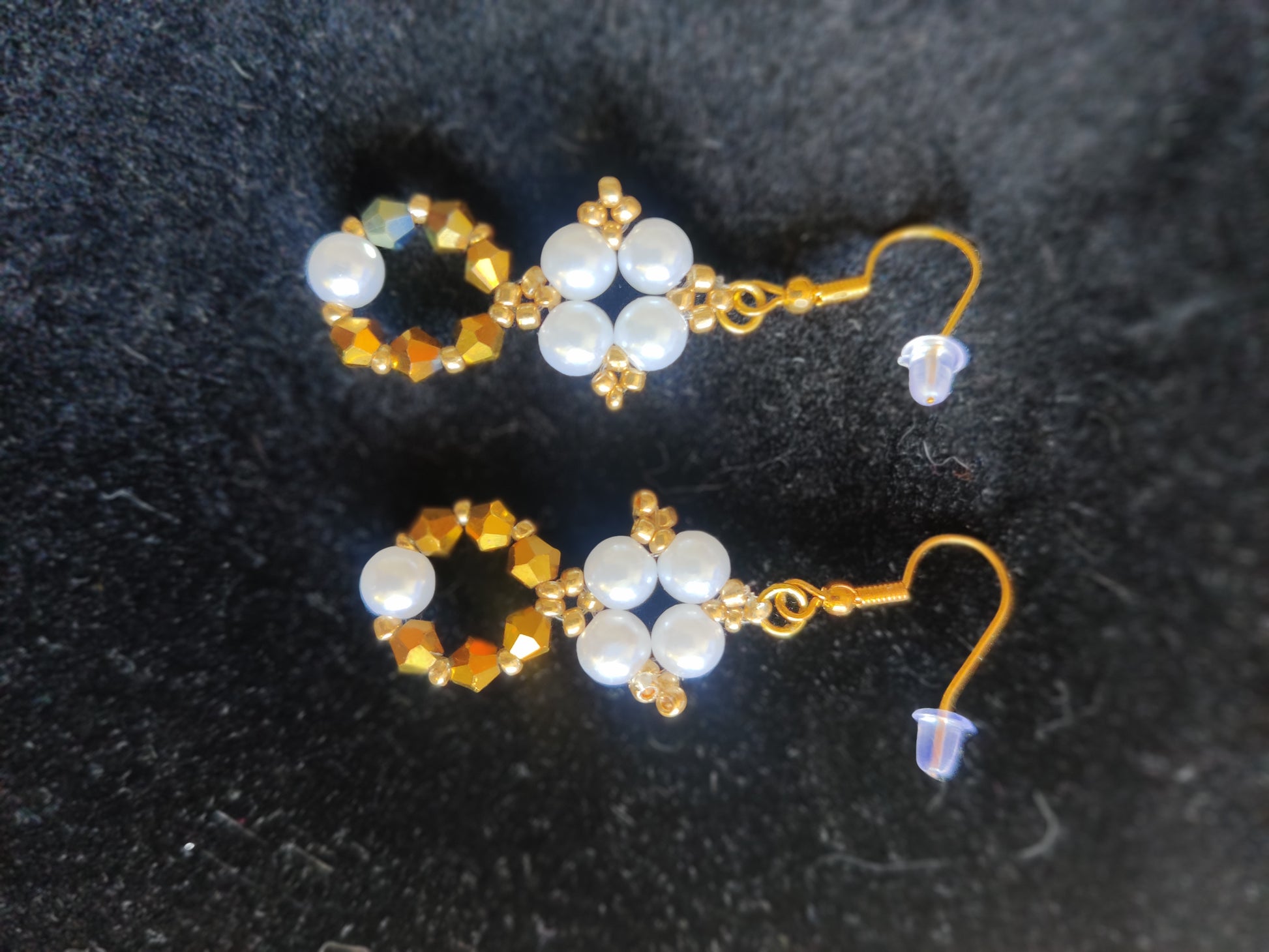 - Vita pärlor kombinerat med guldiga kristaller