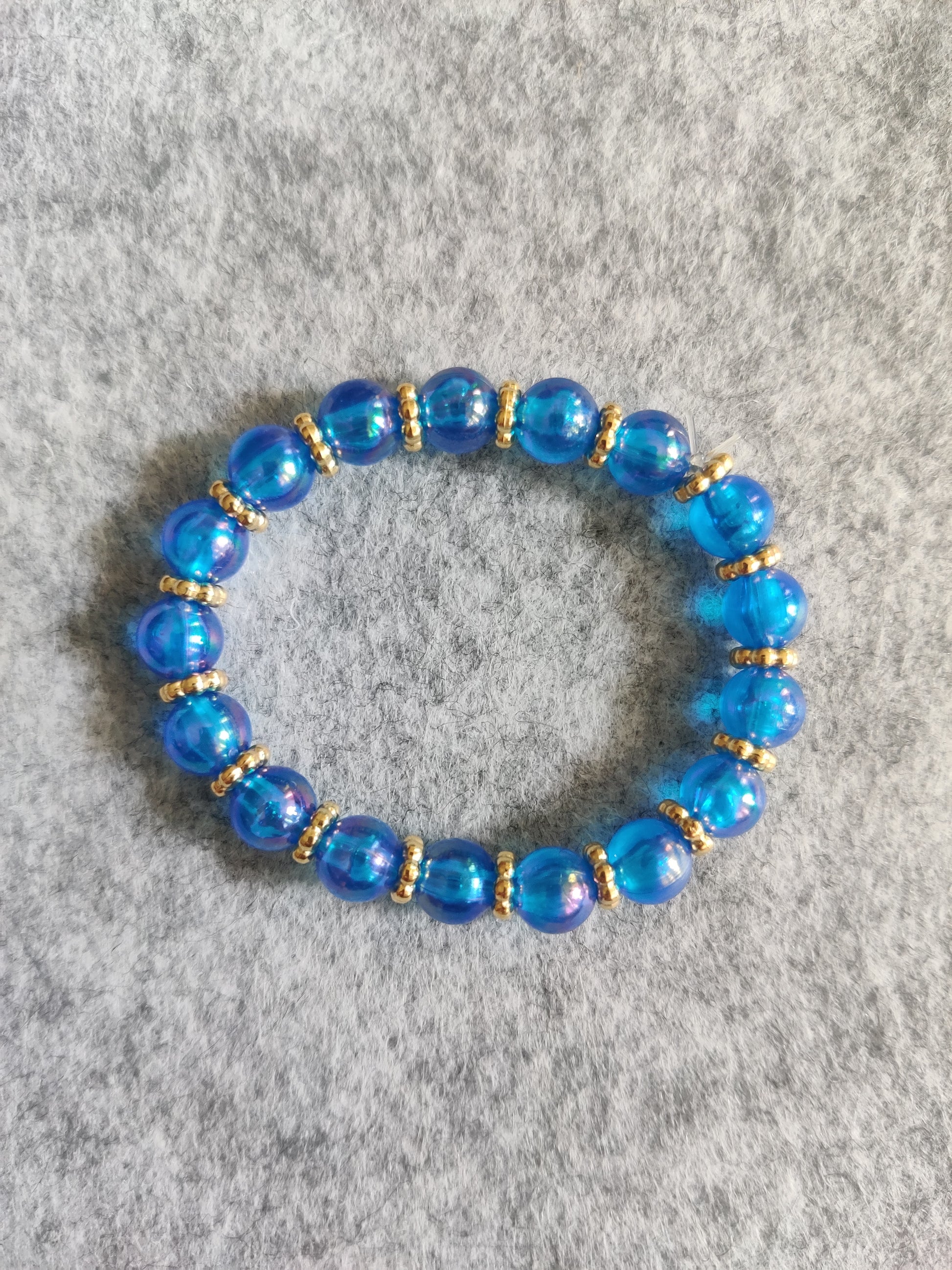 Material: Glaspärlor, guldpläterade detaljer, elastisk tråd
