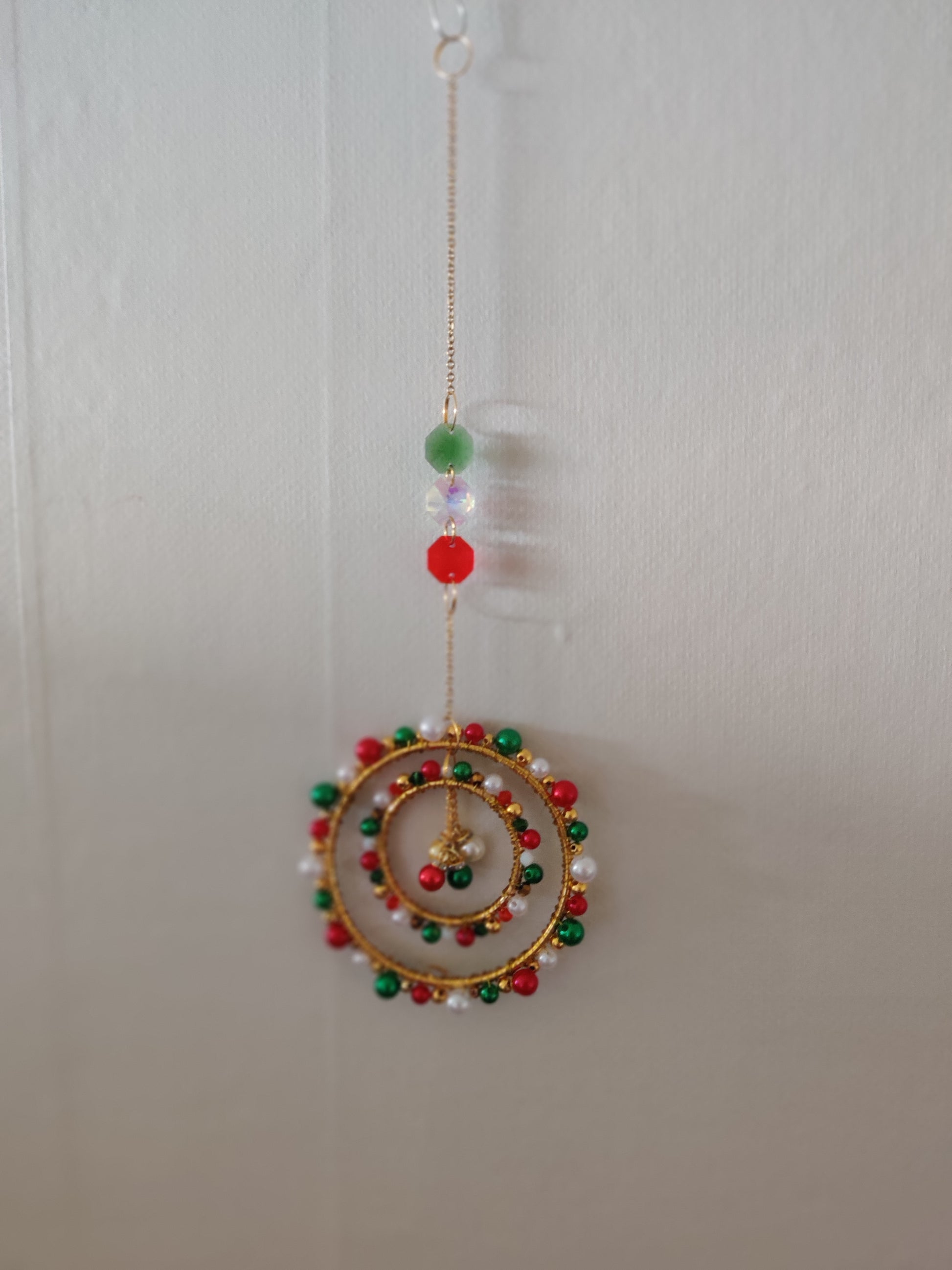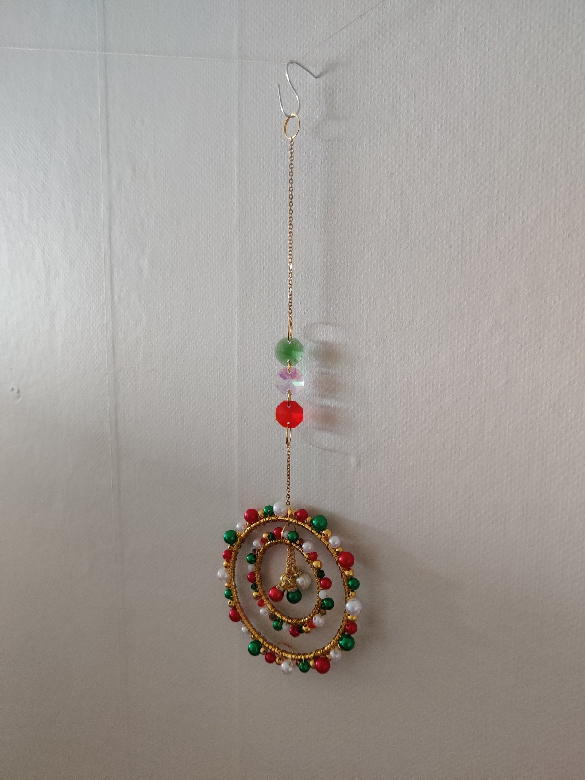 En vacker handgjord julljusfångare i spiralform som fångar och reflekterar ljuset på ett magiskt sätt. Perfekt julpynt att hänga i fönstret eller i julgranen.