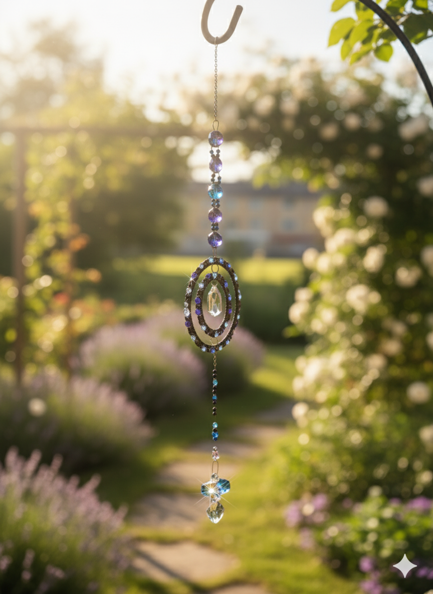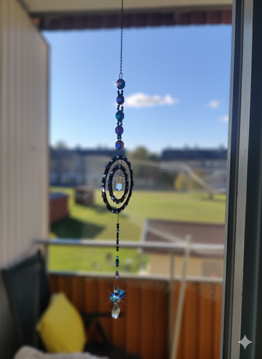 Kristall Solfångare Blå Vit Silver - Handgjord Julprydnad