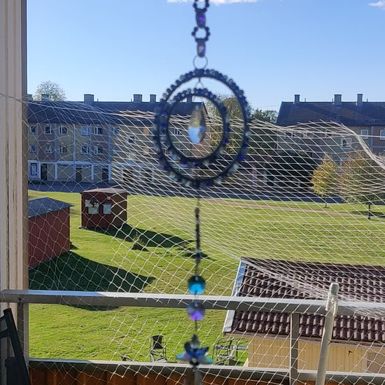 Häng upp din solfångare i ett soligt fönster och njut av de magiska ljuseffekterna som dansar genom rummet. De blå, vita och silvriga kristallerna skapar en vintrig och festlig atmosfär som är perfekt för julen.