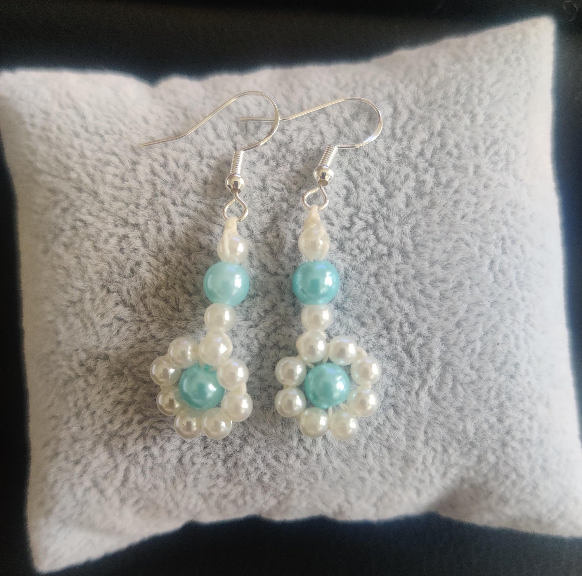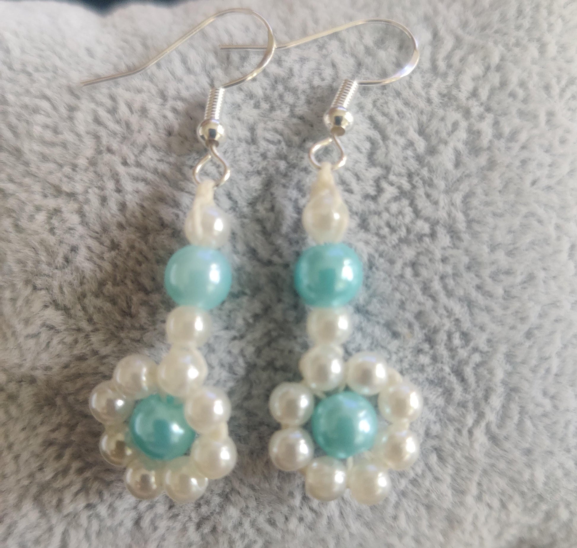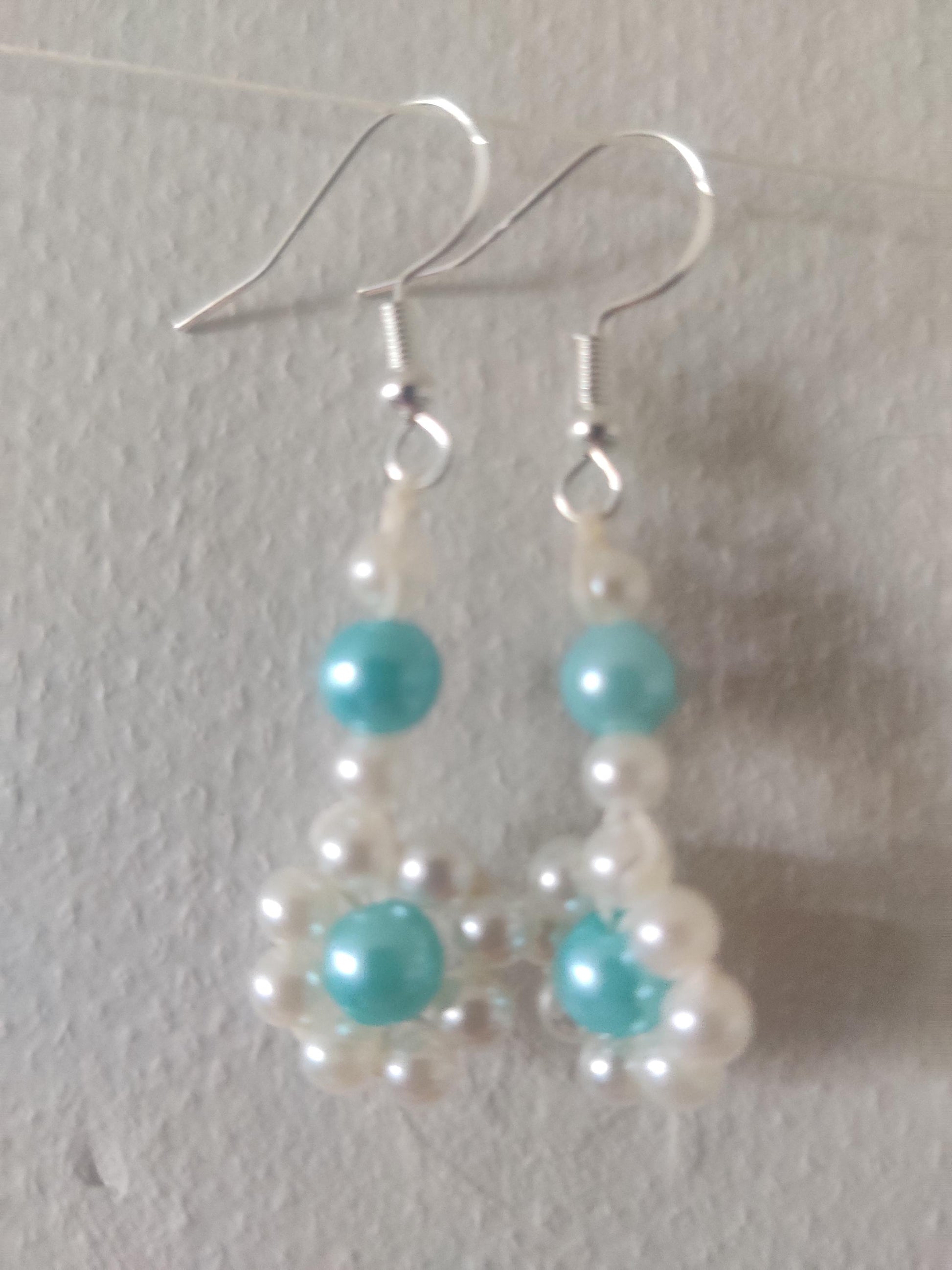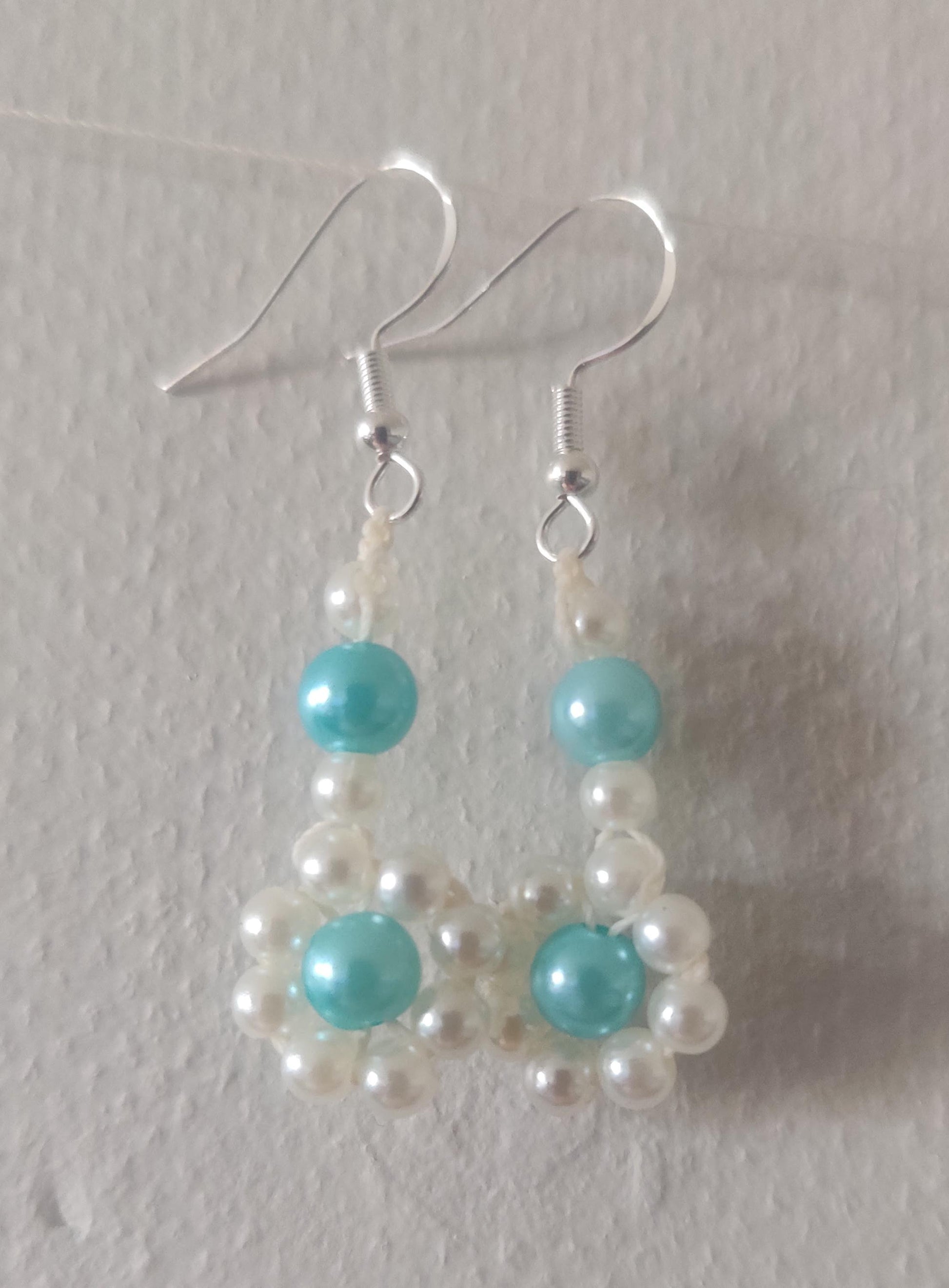 - Gjorda med vita och turkosa akrylpärlor