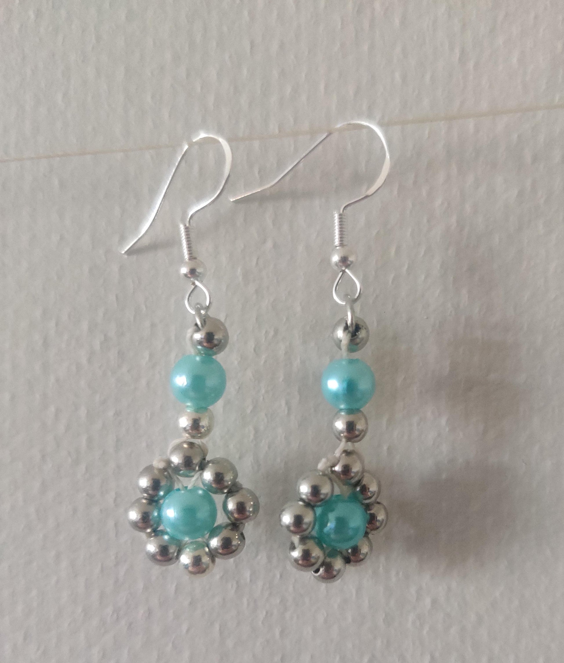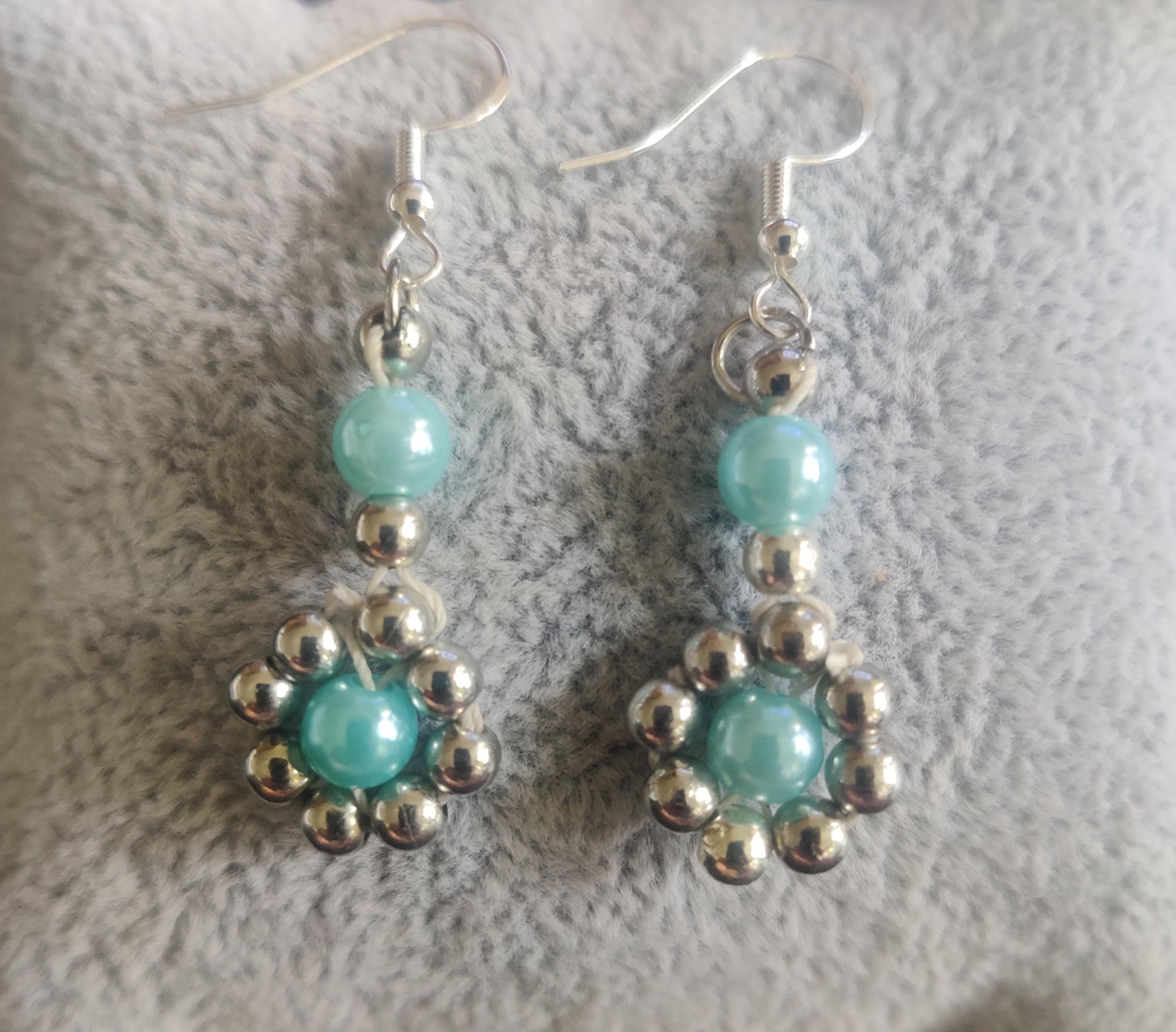 Elegant handgjort smyckesset med vackra turkosa akrylpärlor och silverpläterade detaljer.