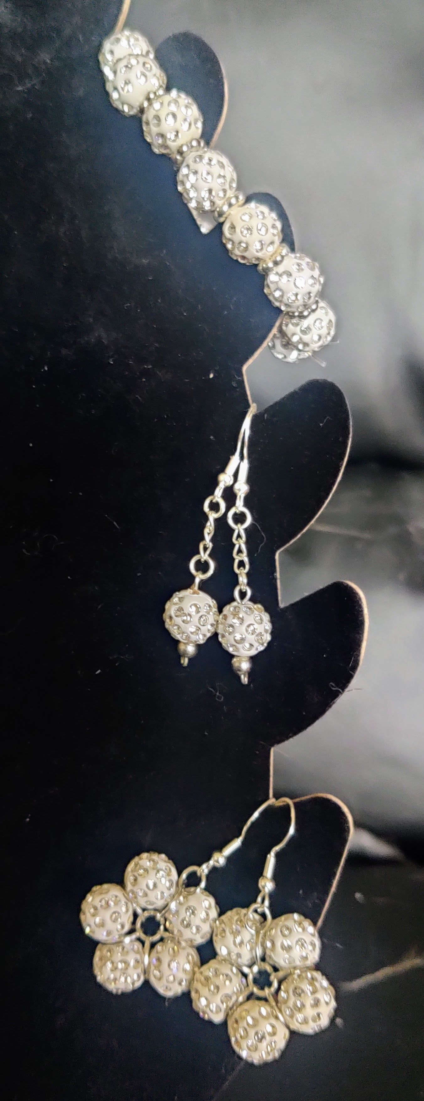 Detta exklusiva smyckesset innehåller både armband och två par olika örhängen med glittrande vita kristallpärlor. Perfekt för speciella tillfällen eller när du vill känna dig extra elegant!